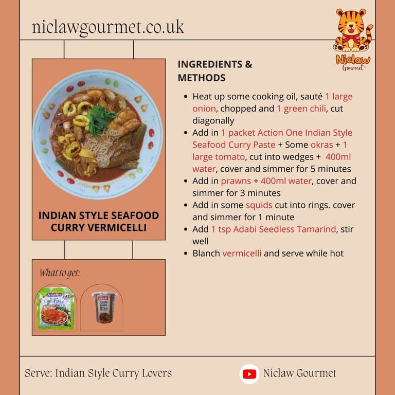 Heat up curry paste on low heat. Add tomato, chili and onion. Sautee for one minute.
