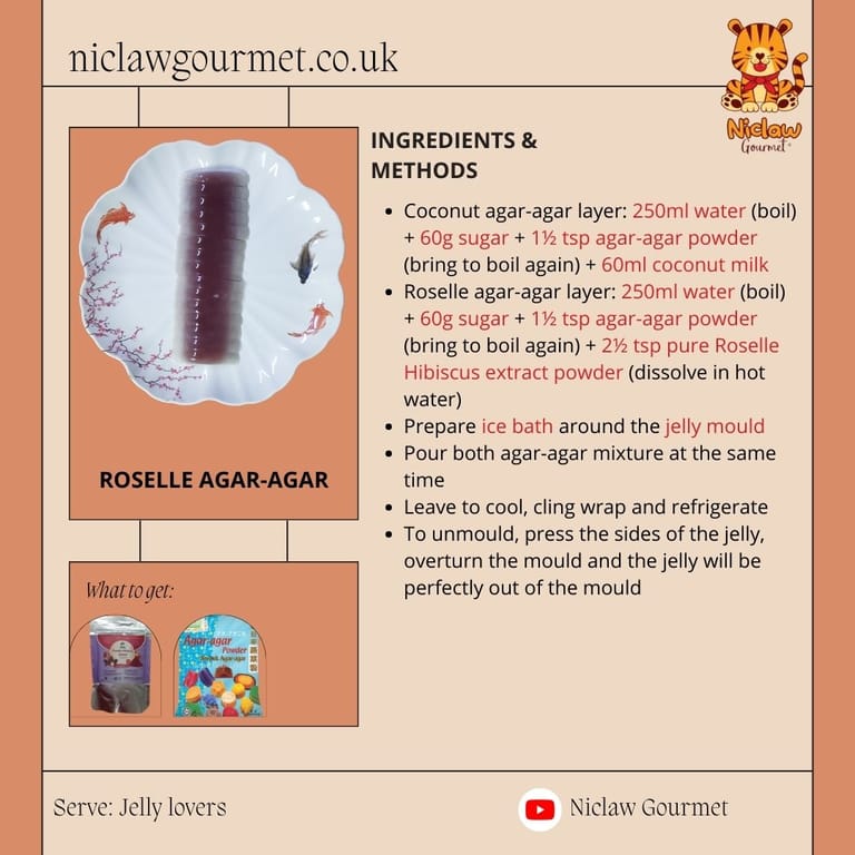 Pour one packet of agar-agar powder and 250g sugar to 1250ml water and mix well.