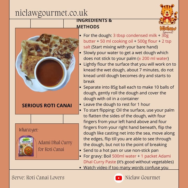 Add soft boiled vegetables for extra flavour and salt to taste. Adami Curry Dhall paste is best served with roti canai (paratha), roti jala, roti pita, roti naan, nasi minyak and nasi briani.