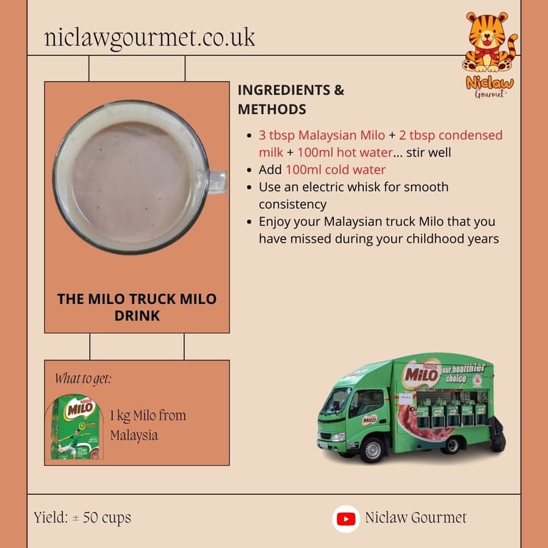 Add 6 teaspoons of Milo into 200ml hot water and stir.